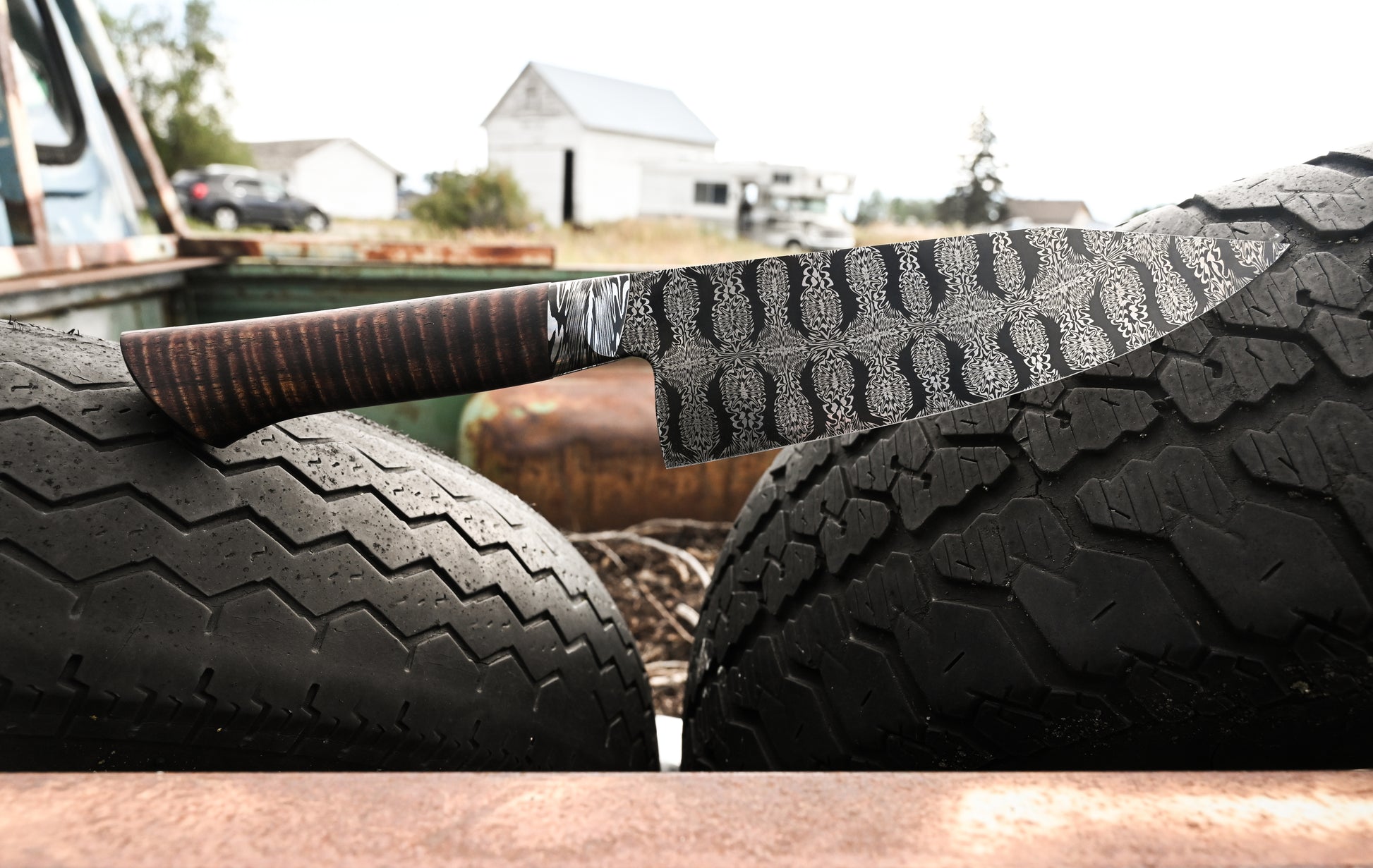I use Nitro-V for all utility series knives. This is a modern day, high performance, stainless steel designed specifically for knives. Hardened to 62 Rockwell, Nitro-V offers a perfect balance between hardness and toughness. The Addition of Nitrogen and Vanadium adds to its wear resistance by forming vanadium and nitrogen carbides. Nitrogen Also improves Corrosion resistance.